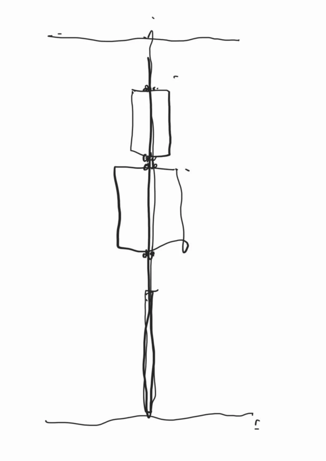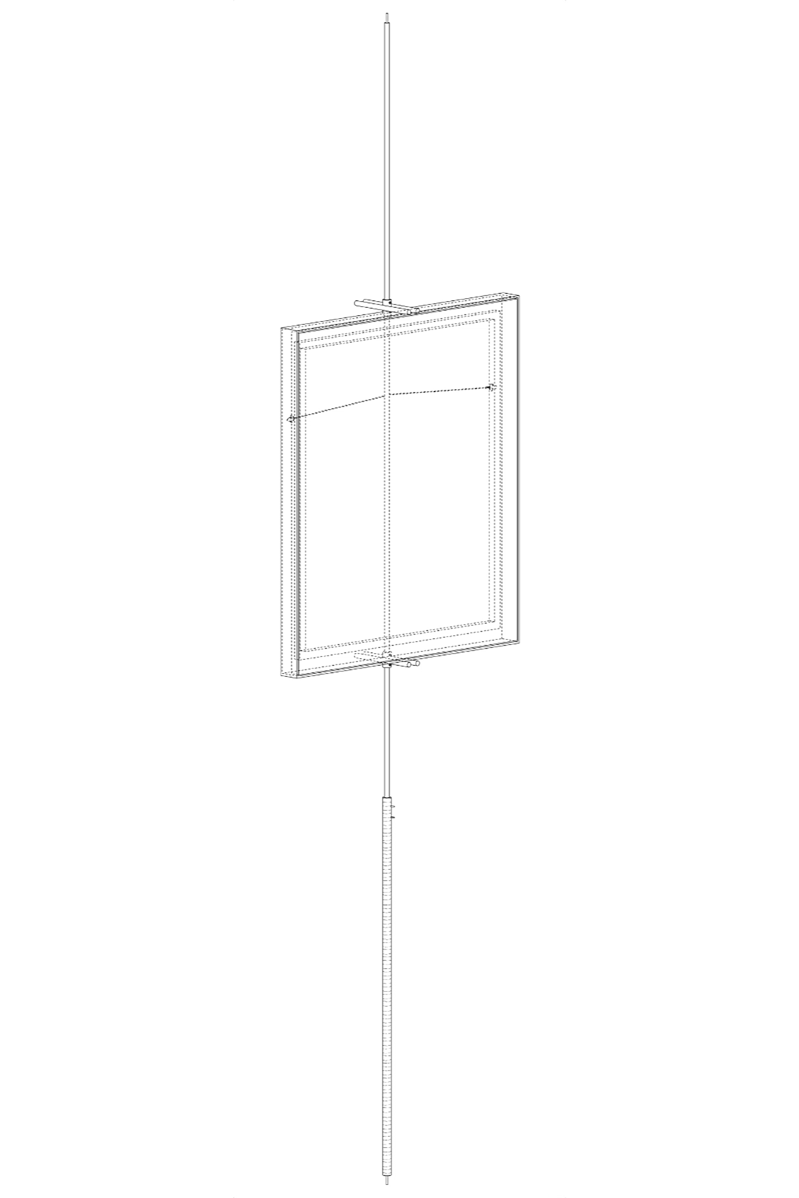 A floor-to-ceiling display system, drawing on the practice’s research into experimental fixing systems for artworks.